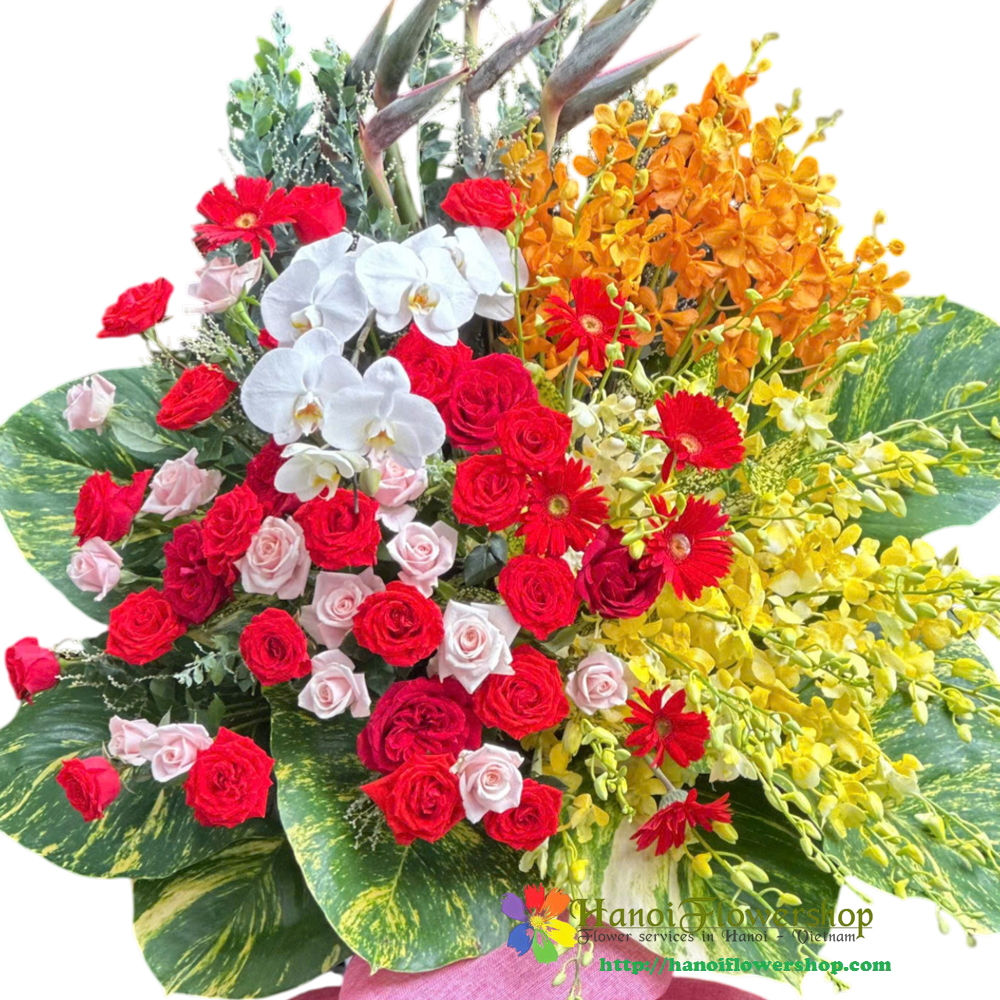 | Kind of flowers | Roses, gerberas, dendrobium orchids, phalaenopsis orchids, bird of paradise |