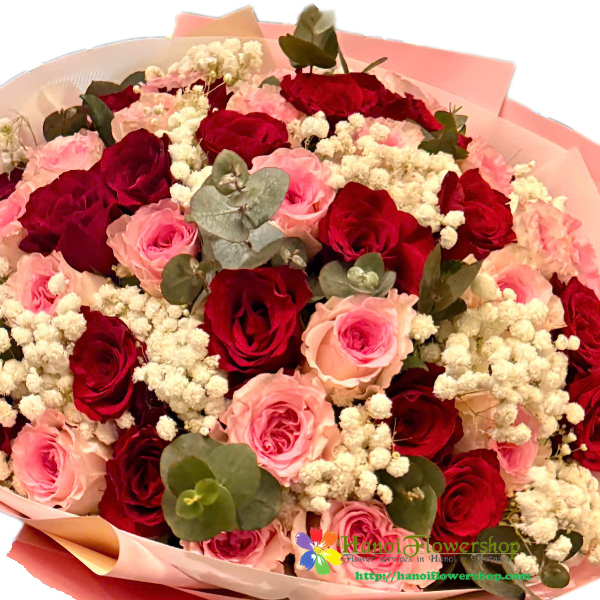 | Kind of flowers | Pink roses, red roses, baby breath |