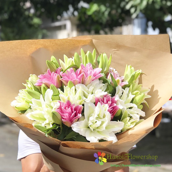 White and pink lily bouquet