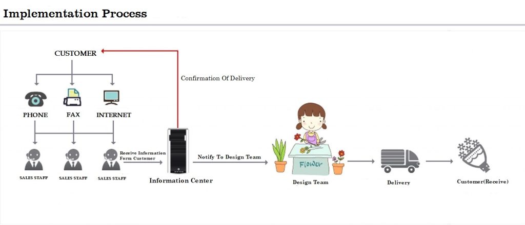 You can select your favourite flowers from the website or of your own and fax to us indicating such information as code, information of buyer (Full name, telephone number, address, payment method), information of receiver (Full name, telephone number, address,) and message content to the receiver etc…